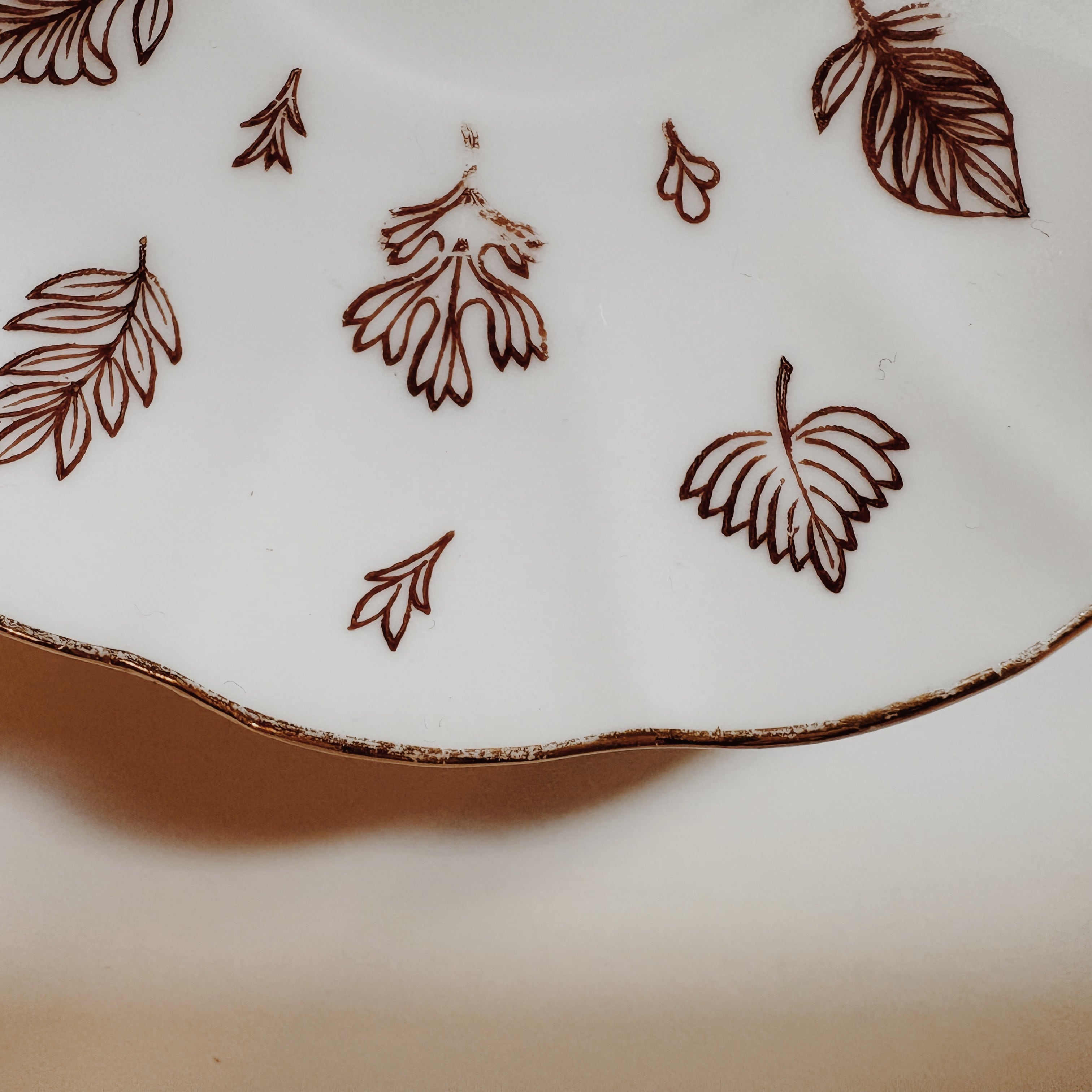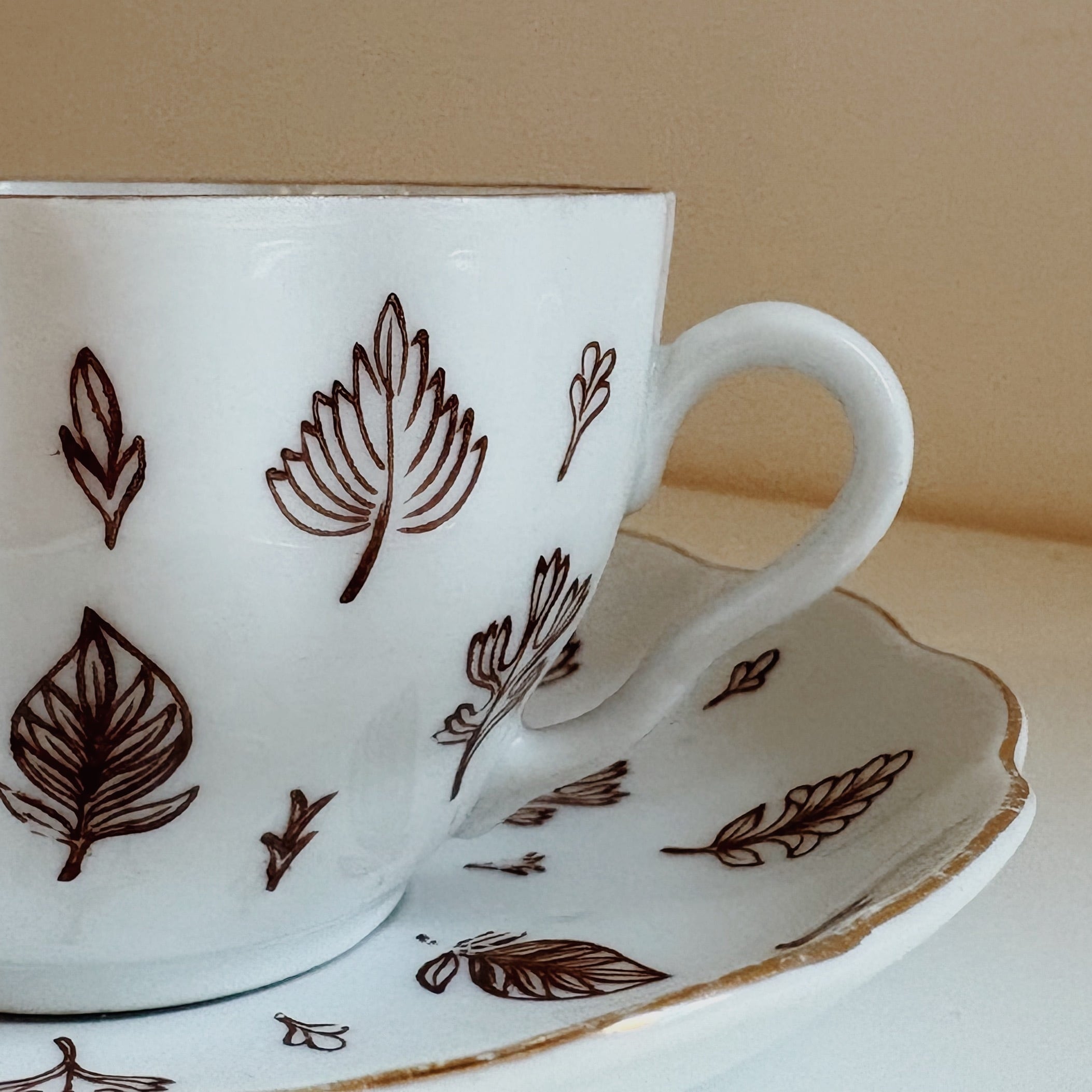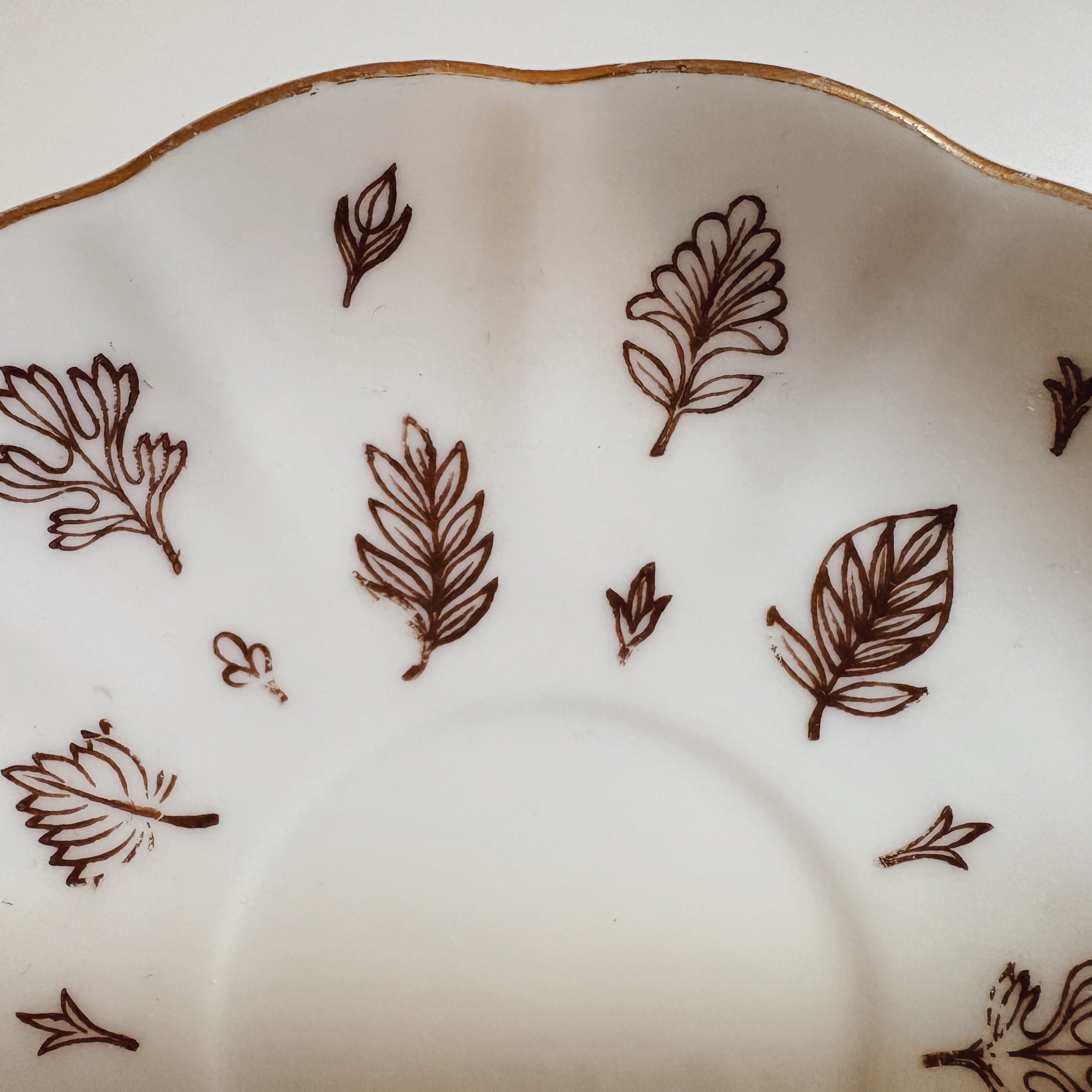 繊細な細いブラウン、縁は金彩が施してあります。