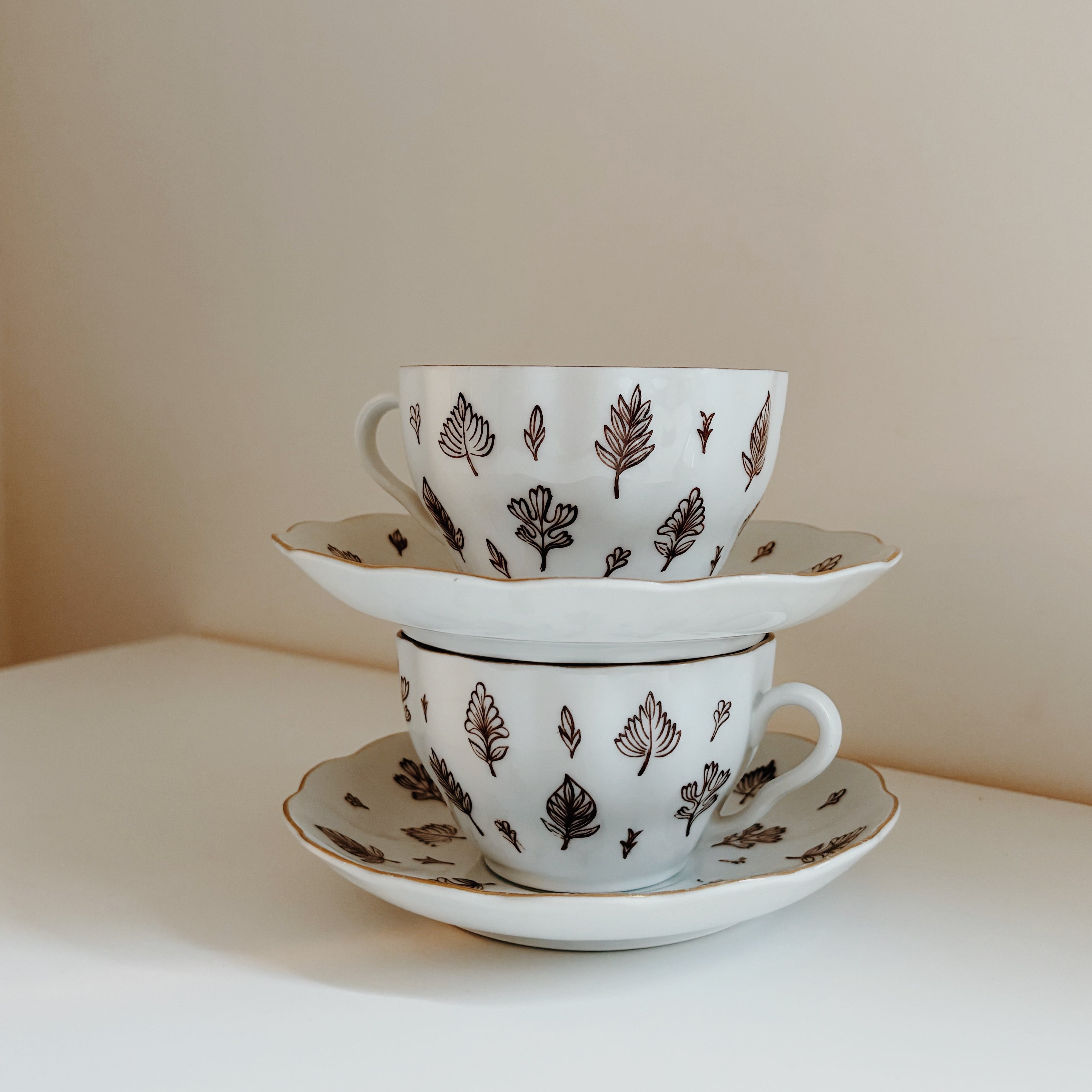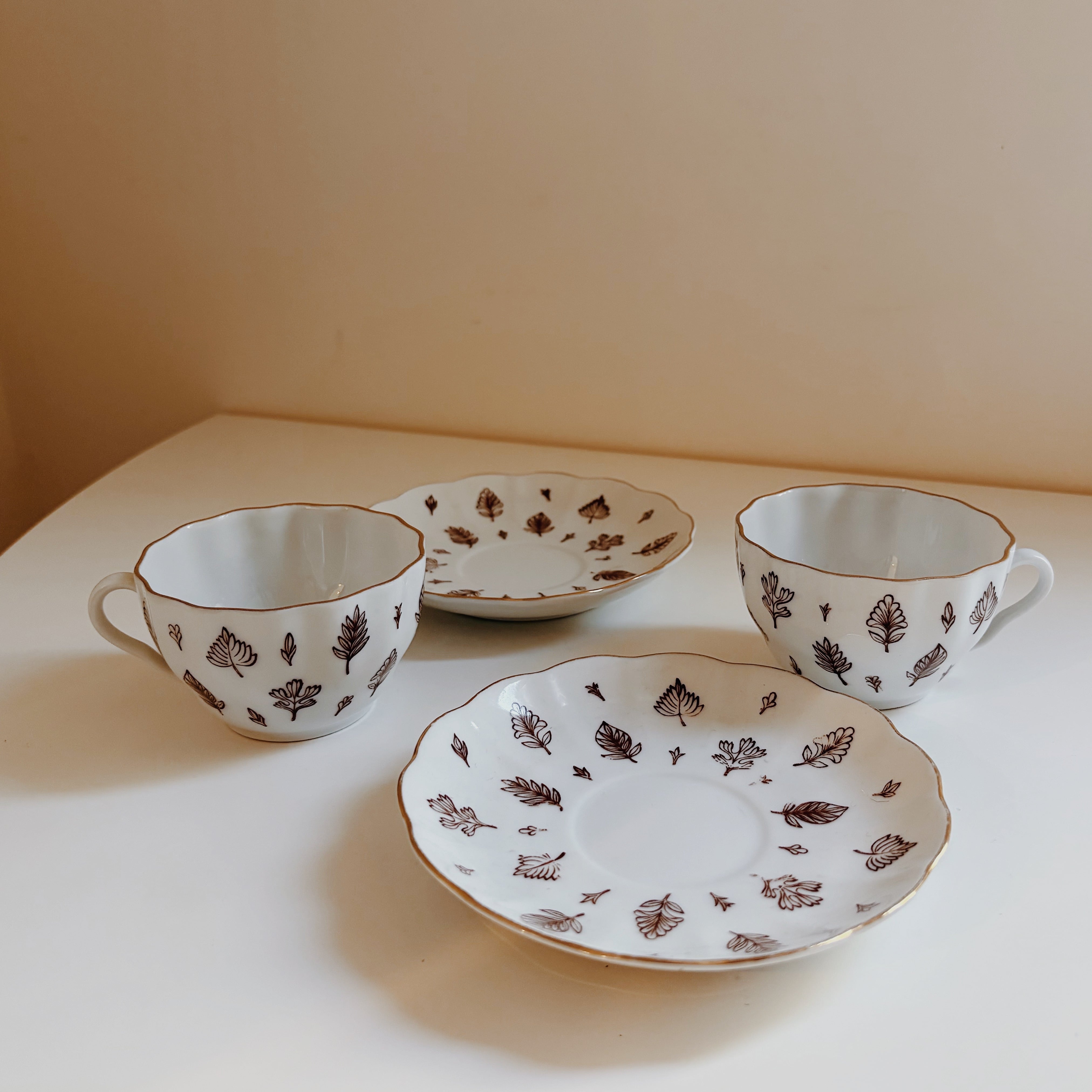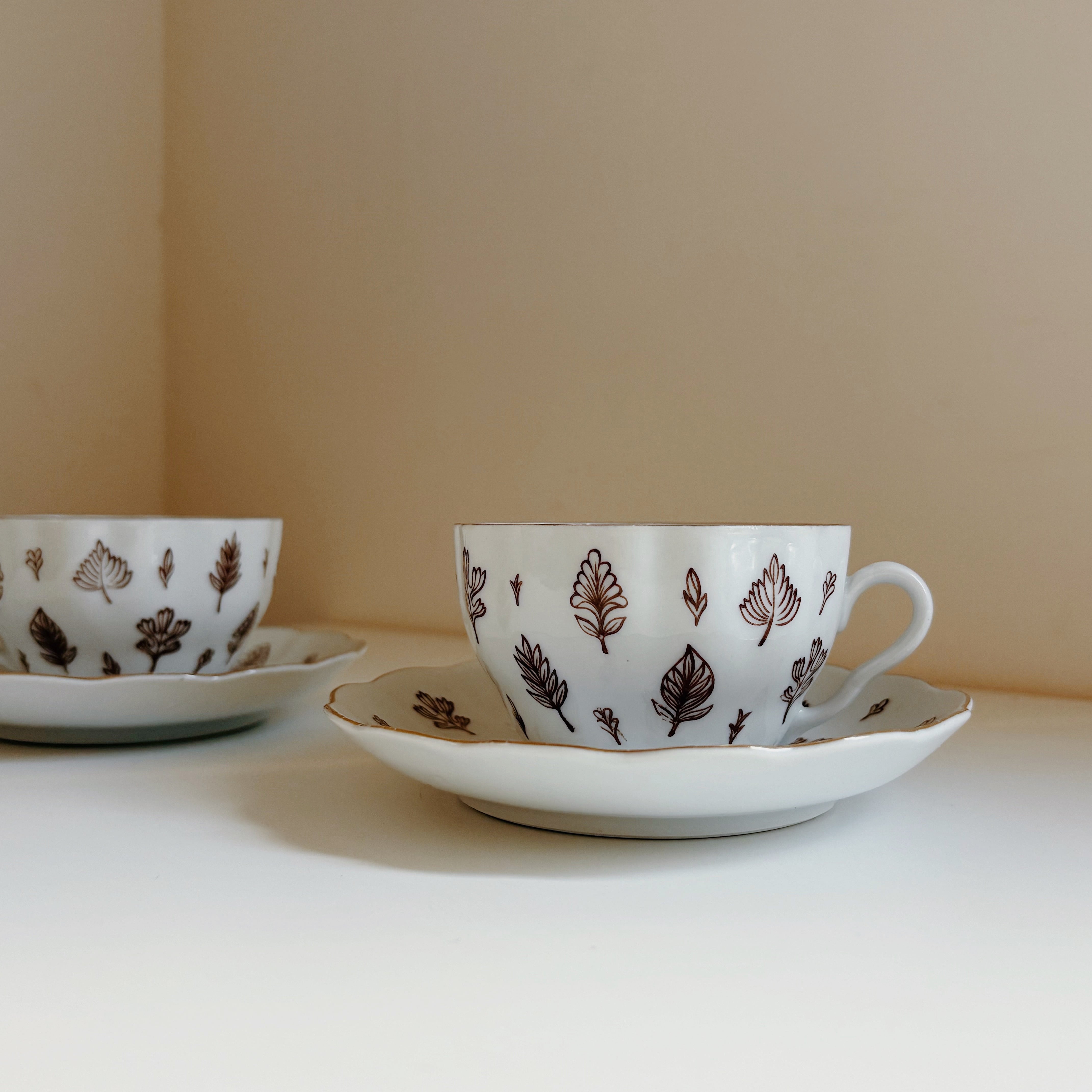 繊細な細いブラウン、縁は金彩が施してあります。